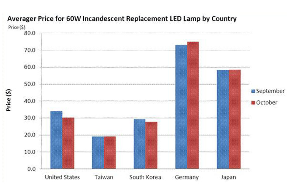 IMS Research also found a significant variation in the price of these lamps by region. Germany has the most expensive lamps, priced at $70, while in Taiwan; equivalent lamps are priced at $19https://zmi.led-professional.com/Plone/media/business_reports_ims-research-monthly-led-lamp-retail-price-tracker-2013-global-average-retail-price-for-60w-incandescent-led-lamps-at-36-in-october_global-average-retail-price-for-60w-incandescent/viewhttps://zmi.led-professional.com/Plone/media/business_reports_ims-research-monthly-led-lamp-retail-price-tracker-2013-global-average-retail-price-for-60w-incandescent-led-lamps-at-36-in-october_global-average-retail-price-for-60w-incandescent/@@images/image-1200-2c43f9357edb233338640050ab6666bd.jpeg