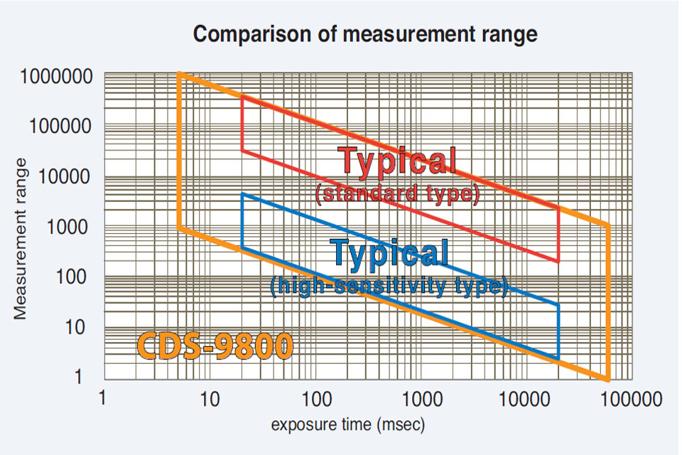 A wide measurement range was achieved by expanding exposure time and combining ND filters
