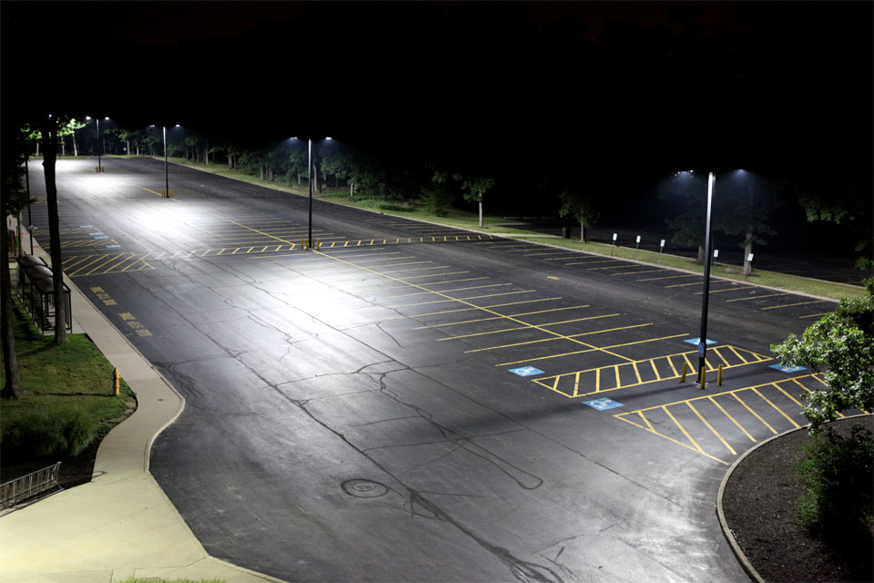 GE's 218-watt Evolve LEDs are used to illuminate the parking lot and driveway mainly