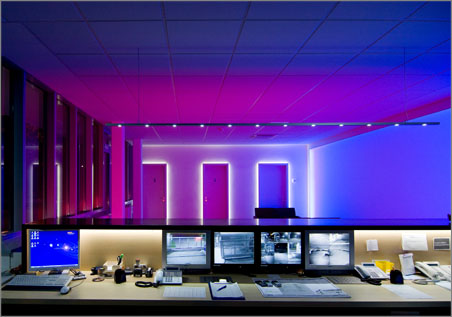 Workspaces can also be lit ergonomically with LEDs, by backlighting monitors, for example. Apart from this, color LEDs can also achieve interesting effects (Source: OSRAM).https://zmi.led-professional.com/Plone/media/project_news_general-lighting_osram-opto-semiconductors-reception-building-is-lit-entirely-by-leds_os_oso_reception2-jpg/viewhttps://zmi.led-professional.com/Plone/media/project_news_general-lighting_osram-opto-semiconductors-reception-building-is-lit-entirely-by-leds_os_oso_reception2-jpg/@@images/image-1200-71e77a11e5126e1cc5f6ff10219d01c2.jpeg