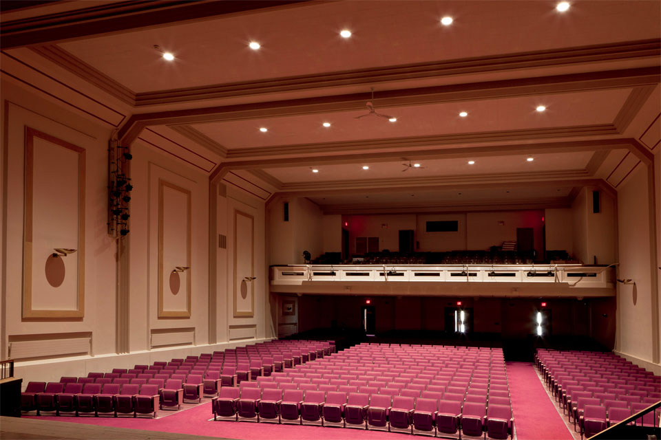 One-for-one replacement of 500-watt T4 Quartz luminaires with 15 Essentia medium distribution downlights (42 LEDs each) at St. Catherine’s High School Auditorium.
