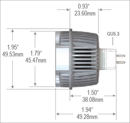 Available in Spot (12°), Narrow Flood (24°), Flood (34°) and Wide Flood (50°) beam spreads.