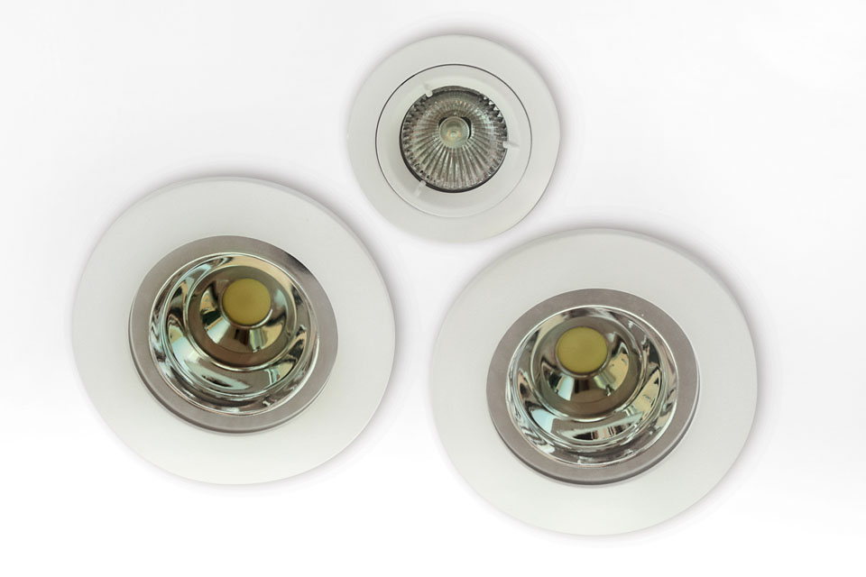 Figure 1: The competing light sources (Halogene, standard CRI~80 LEDs and high CRI~95 LEDs)