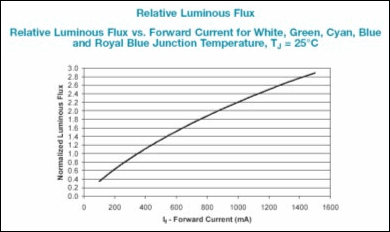 Relative Luminous Flux from Philips Lumileds datasheet DS51, p. 15