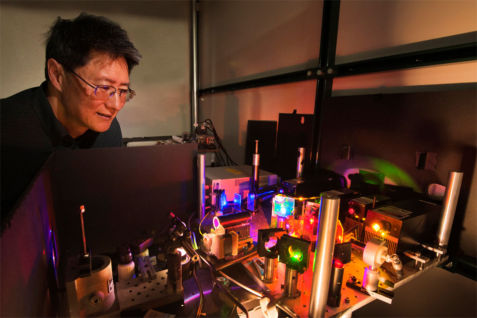 Sandia researcher Jeff Tsao examines the set-up used to test diode lasers as an alternative to LED lighting. Skeptics felt laser light would be too harsh to be acceptable. Research by Tsao and colleagues suggests the skeptics were wrong. (Photo by Randy Montoya)https://zmi.led-professional.com/Plone/media/technology_light-generation_competing-leds-high-quality-white-light-produced-by-four-color-laser-source_sandia-researcher-jeff-tsao-examines-the-set-up/viewhttps://zmi.led-professional.com/Plone/media/technology_light-generation_competing-leds-high-quality-white-light-produced-by-four-color-laser-source_sandia-researcher-jeff-tsao-examines-the-set-up/@@images/image-1200-6a1c7693bd7147afab4698f59f4c40b5.jpeg