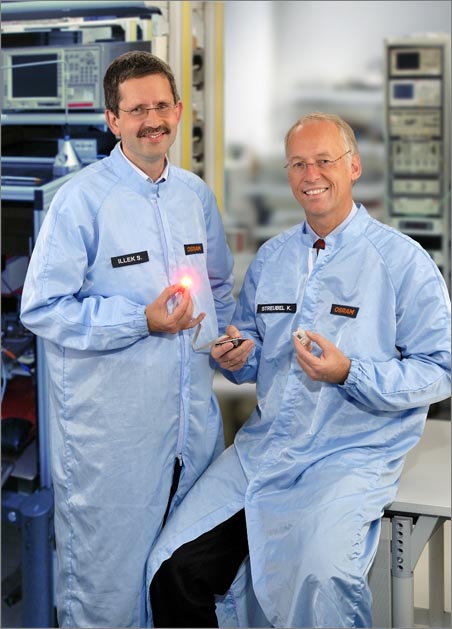 Tiny light - huge impact. Dr. Illek and Dr. Streubel with the OSTAR LED in their laboratory in Regensburg. (Source: OSRAM)https://zmi.led-professional.com/Plone/media/technology_light-generation_german-future-prize-2007-for-osram2019s-led-research-team_os_fut_price_winners2-jpg/viewhttps://zmi.led-professional.com/Plone/media/technology_light-generation_german-future-prize-2007-for-osram2019s-led-research-team_os_fut_price_winners2-jpg/@@images/image-1200-6a1c7693bd7147afab4698f59f4c40b5.jpeg