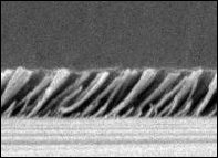 To achieve a very low refractive index, silica nanorods are deposited at an angle of precisely 45 degrees on top of a thin film of aluminum nitride.
